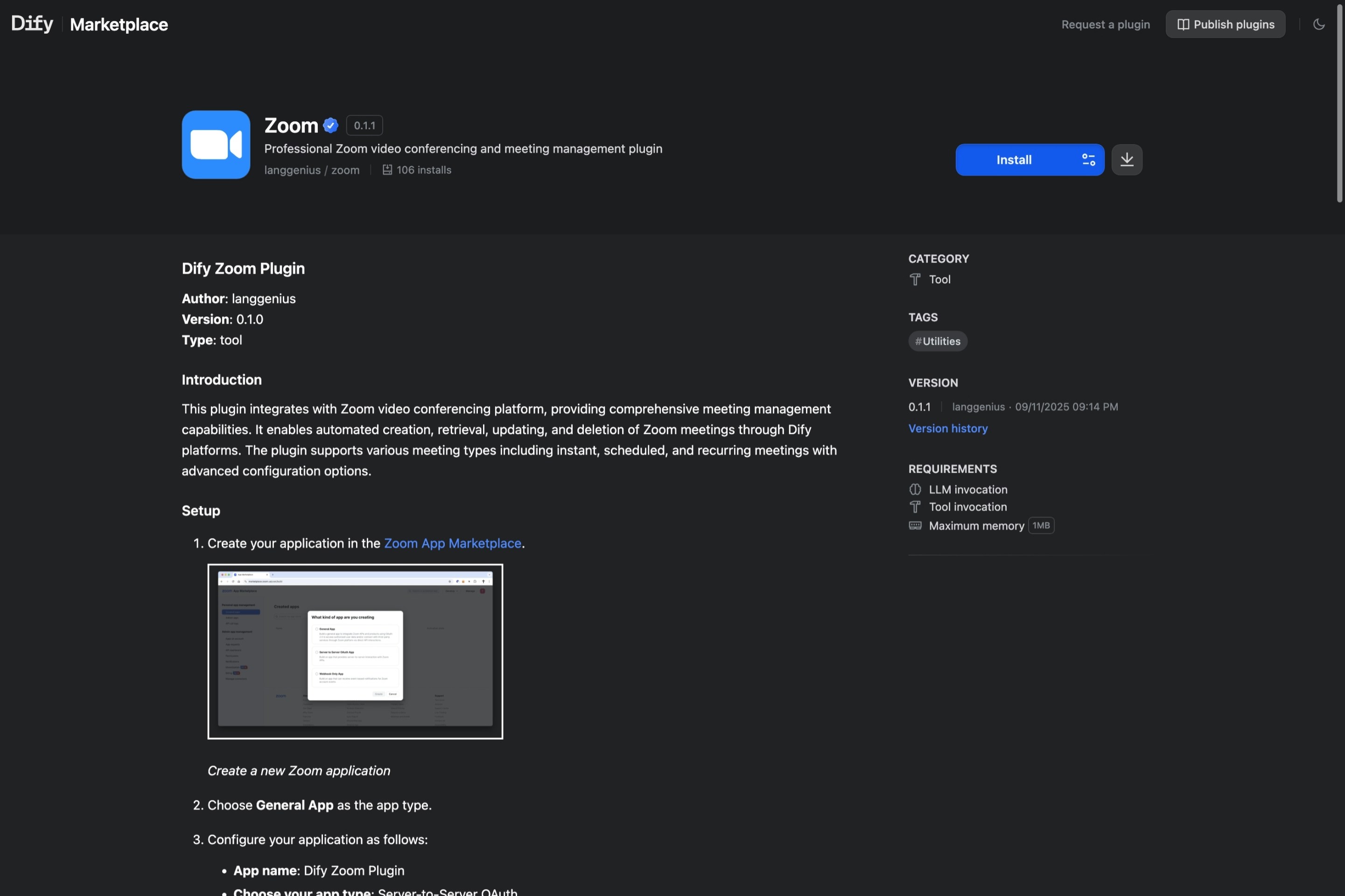 プラグインにユーザーの優先言語のREADMEがある場合、Dify Marketplaceのプラグイン詳細ページにはその言語バージョンのREADMEが表示されます。