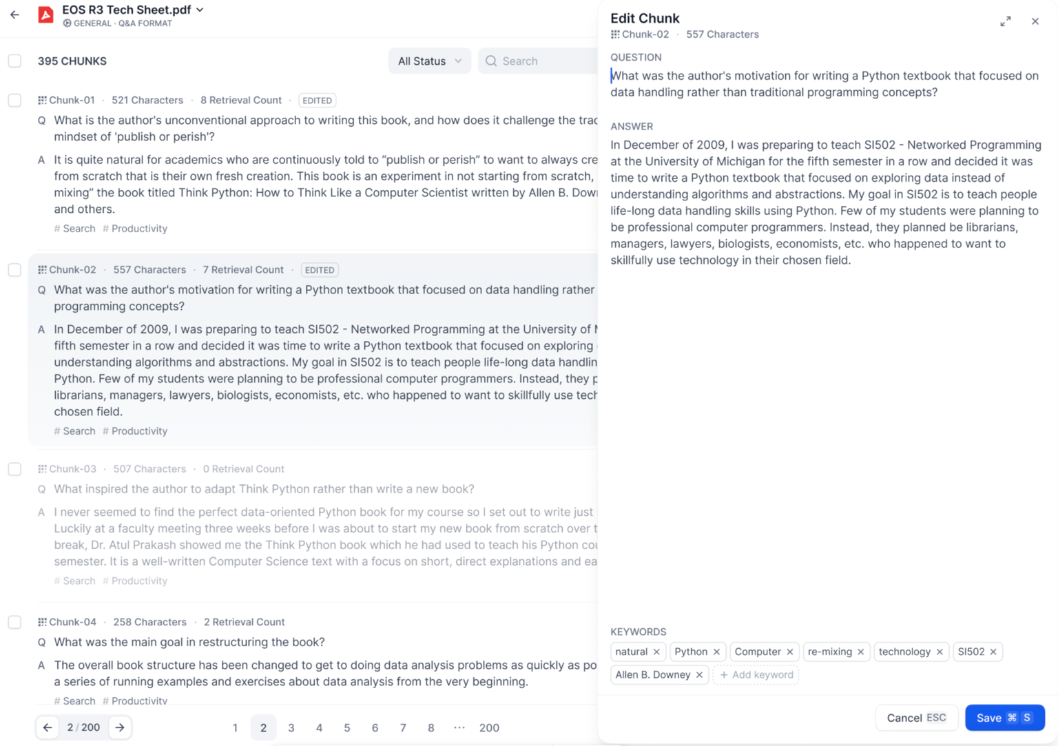 已创建的知识库支持重新配置文档分段。- 较大分段